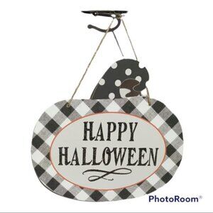 Halloween Wall Hanging Decoration Pumpkin Shape Farmhouse Buffalo Check Multicolor.
