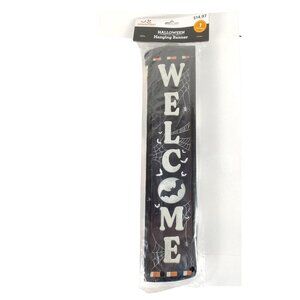 Halloween Welcome Bat Spider Web 72 inch Vertical Hanging Banner Decoration