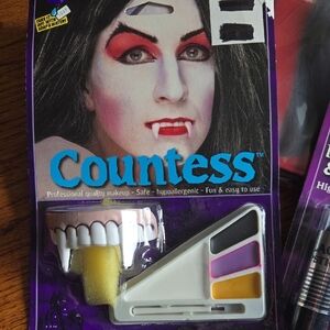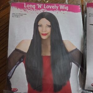 Halloween Wigs Black and Gray Long Hair and Makeup Set
