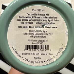 Stay spooky and stylish with this 30oz (887 mL) double-walled stainless steel tumbler featuring the adorable Wildflower Ghost Sage design by LakshDesignCo. This eco-friendly, reusable tumbler keeps drinks hot or cold for hours with its vacuum-sealed insulation—all without condensation!