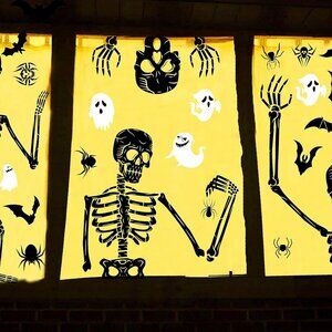 BLACK SKELETON WINDOW CLING: Halloween is coming soon,decorating your window with these skeleton window decorations and absolutely will catch neighbors eyes looking at the decorations, get a lot of appreciation. alloween decorations window decals is a festival halloween decor