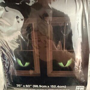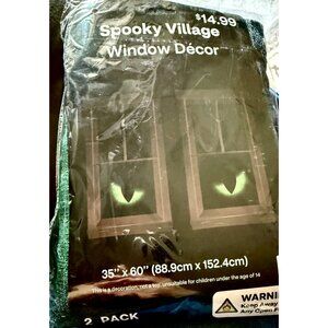 Bring a chilling Halloween vibe to your home with this brand-new sealed set of Spooky Village Window Décor – Green Cat Eyes. Each pack includes two large 35″ × 60″ panels, designed to hang in your window and give the illusion of glowing green eyes watching from the dark. Ideal for front-window displays, party décor, or adding spooky ambiance at dusk.