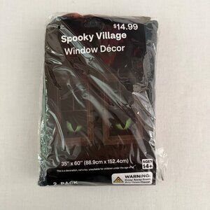 This Spooky Village Window Décor adds a festive, eerie touch to your Halloween setup. Measuring 35 x 60 inches, the pack includes two pieces featuring green, glowing eyes. Designed for indoor use, it suits windows or other flat surfaces. Not a toy, ages 14+.