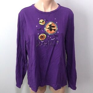 Halloween Witch Bat Spider Purple Long Sleeve Top
