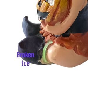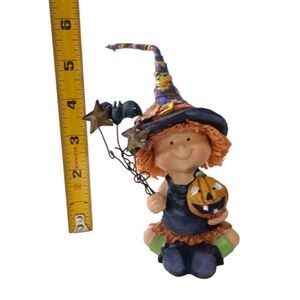 Halloween Witch Figure Resin Vintage 90s CUTE Jack O Lantern Bats TINY FLAWS. Condition is pre-owned and vintage 1990s. Has some wear at the tip of the hat. The toe of a boot appears broken off .. very hard to tell. Super cute witch, straw hair, smiling. Unbranded. Please see all photos for detailed condition.