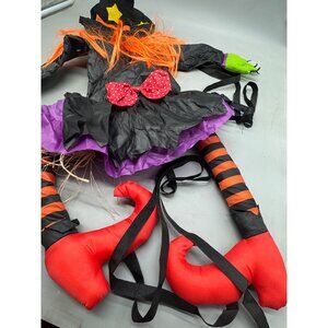 Halloween Witch Hanging Decoration With Orange Hair & Striped Legs Humorous READ