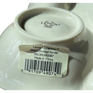 Serve your Halloween treats in style with the Lenox Halloween Autumn Witch Divided Server. Made with fine China, this beautifully detailed, spooky serving dish is perfect for any festive gathering. Comes in original box.