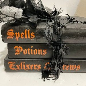 Halloween Witches Book Stack with Dark flowers Dark academia