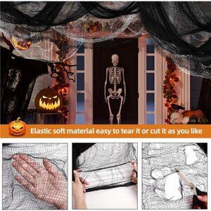 🧿【Suitable Size】:The size of our spooky cheesecloth is 30 X 72 inches when opened, enough for your Halloween decorating needs. The black creepy cloth is easy to hang and stretch, suitable for many halloween decorations indoor occasions.