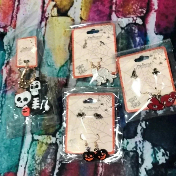 Halloween earring lot of 3 sets and a keychain/ clip