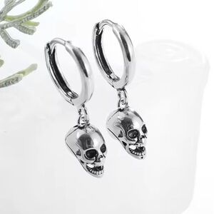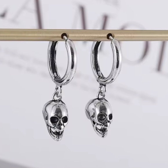 Halloween gothic vintage black Silver Skull Hoop Earrings