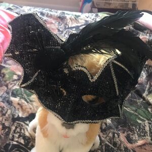Beautiful Halloween mask black with beads all over it this would be perfect for Halloween party or trick or treating and a black dress would go lovely with it. get it now before it’s gone!