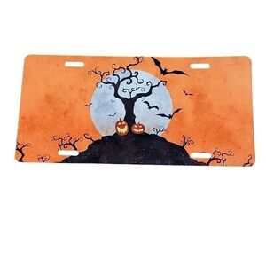 Halloween Pumpkin Bats Novelty license plate Orange and black IN:C