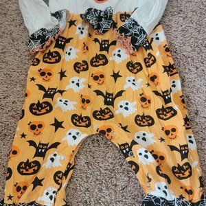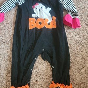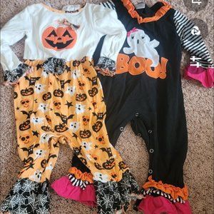 Set of 2 Halloween outfits for baby girl. Pumpkin is size 18-24m and the ghost is 24m. Both button around the legs for easy diaper change. Washed, not worn.