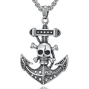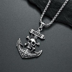 ❤️Halloween style Viking skull bat anchor necklace, N90201P146