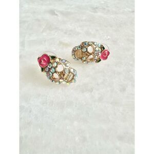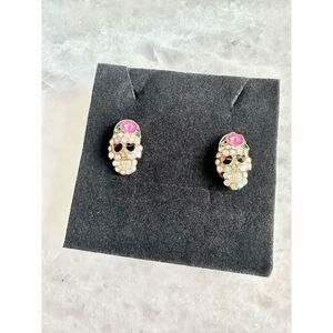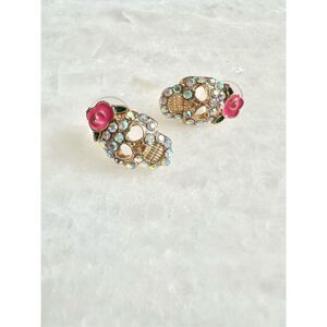 Halloween sugar skull iridescent stud earrings with hot pink rose