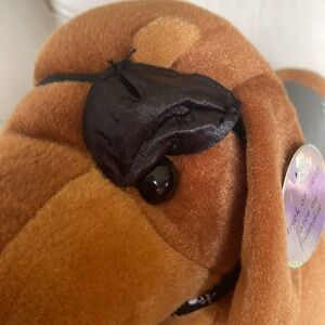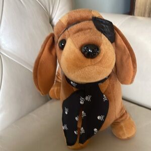 This adorable little dachshund has beats in his belly, which are removable to put in a microwave heat up put back in his belly for a nice warm stuffed animal to hug.