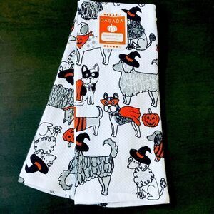 NWT set of 2 Casaba Halloween dogs in costumes cotton printed dish towels.