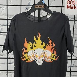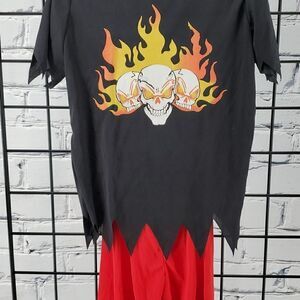 Halloween Costume black shirt with skull graphics and red pants child Size M
