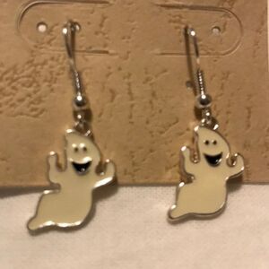 Fall and Halloween are celebrated with these new with tags enamel ghost earrings.