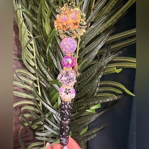 Halloween Hand-Made Custom Extended Beaded Pen with Large Fancy Rhinestone Embellishment Jack-O-Lantern. Stunning!!! Absolutely perfect for then Halloween Fan in your life!