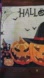 🕷️ Tapestry, weaved style. Tan & black, with Jack-o'-lanterns, bats, spiders, haunted houses, & "Halloween" prints. (in black, red, orange, yellow & green colors)