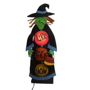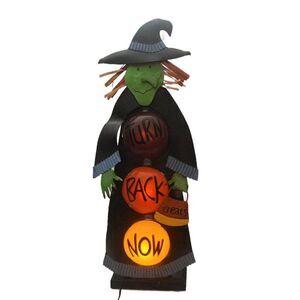 Halloween Stand Up Metal Witch With Alternating Lights Flashing TURN BACK NOW