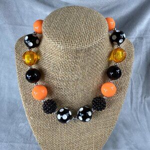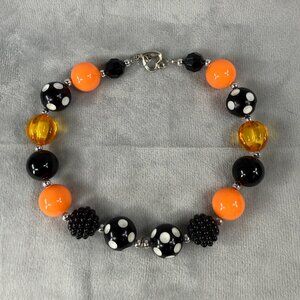 Halloween-Themed Beaded Chunky Necklace With Heart Toggle Clasp. Unbranded. HAS SMALL SCREW HOOK IN CENTER THAT COULD BE USED TO ADD PENDANT. Short length. see photos.