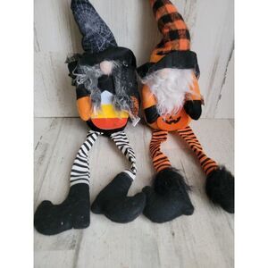 Halloween plush gnome Shelf sitting which candy corn set home decor