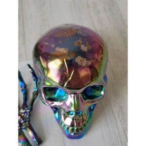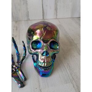 Halloween rainbow iridescent skull skeleton hand set prop decor