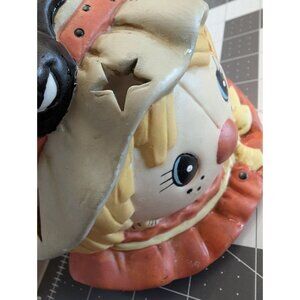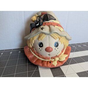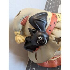 Hallowen Fall Scarecrow porcelian Scarecrow Head w/ Bat candle holder 6 inch