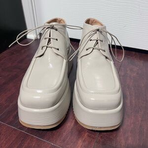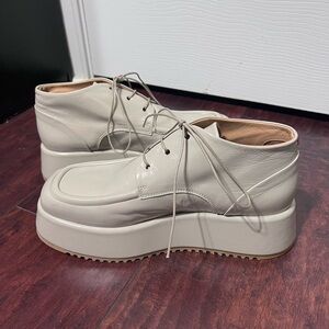 Halmanera Women’s Platform Lace Up Shoe Sz 39 Beige Italian Leather Lug Sole Excellent condition! Platform Heel is 2”. Trendy.