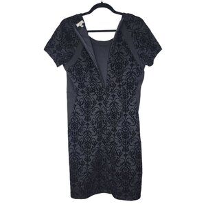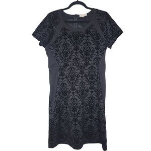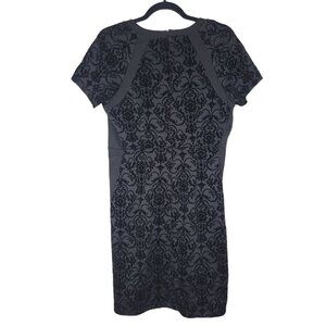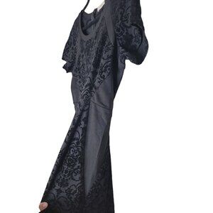 Halo Black Velvet Gothic Dress Size M Knee Length Witchy Damask Pattern Stretch