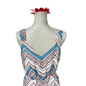 Halo Chevron Patterned Sleeveless Dress, Red, white and blue with Tie sash Sz M