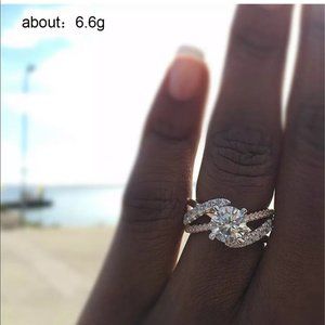 Halo Diamond Simulated White Sapphire Ring