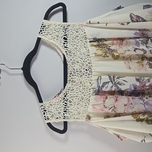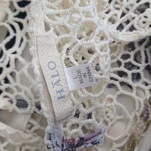 Halo Ivory Floral Dress. Size L. Excellent pre-owned condition. Beautiful crochet neckline.