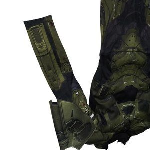 Pre-owned boys Halo costume with mask in good condition. There is a hole underneath arm of one of the sleeves. Please see all photos for costumes general used condition. Size unknown, looks about boys 7-8. Please see measurements.
