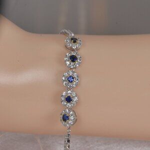 Halo Round Cut Natural Blue Sapphire Bracelet 7"