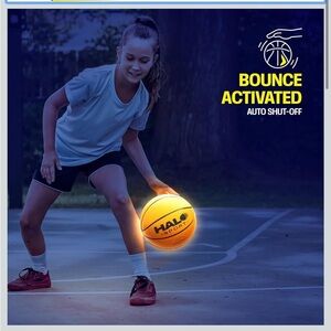 Glow in the dark basketball. Ideal for night play. Durable and Rechargeable. Charging cable included, pump not. Bounce activates the ball and has an auto shut off after a few minutes of non play. Official size 7 ball. No batteries needed.