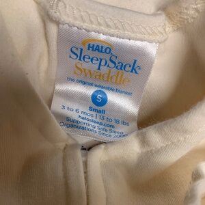 like new, Halo cotton sleep sack with velcro swaddle, size Small (3-6 months, 13-18 lbs)