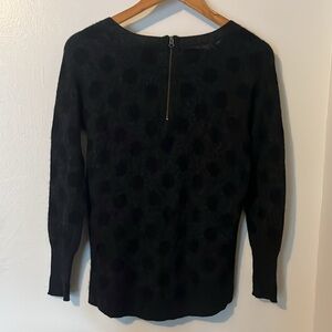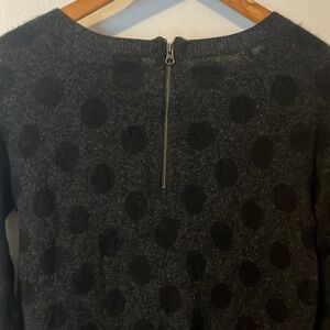 Halogen 100% Cashmere Black & Charcoal Gray Polka Dot Sweater w Zip Back Sz S