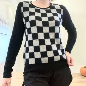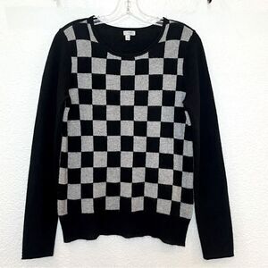 Halogen 100% Cashmere Checkered Print Crewneck Sweater in Black/Grey size Medium