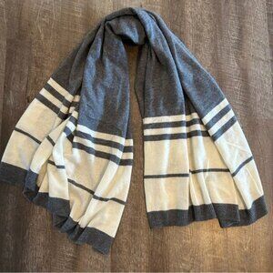 Halogen 100% Cashmere Gray and Cream Striped Blanket Scarf