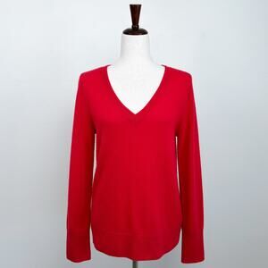Halogen 100% Cashmere Knit Red V-Neck Sweater