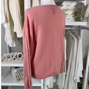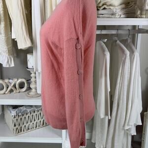 Halogen 100% cashmere pink sweater with buttons down sleeves. feminine #1896