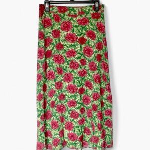 Halogen A-Line Side Slit Midi Skirt In Carmine Roses/Green Womens Size S
