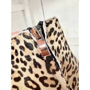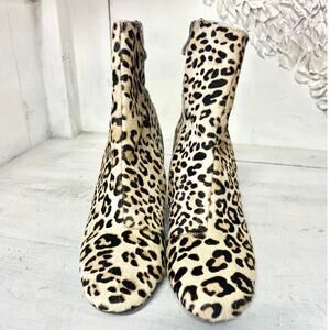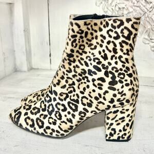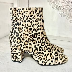 Halogen Abbi Calf Hair Leopard Print Block Heel Ankle Bootie Tan/Black Womens 8M