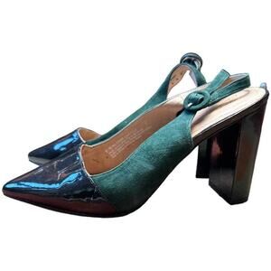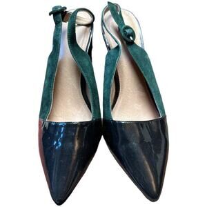 Halogen Atlantic Pacific Green Black Lacquer Slingback Heel Shoes Women's Sz 8.5