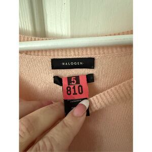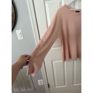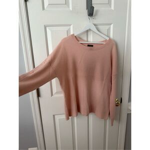 Halogen Atlantic Pacific Pink Button Sleeve Wool & Cashmere Crewneck Sweater sz