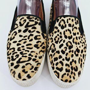 Halogen Baylee Platform Sneakers 9.5 M Leopard Calf Hair Fur Black Tan Slip Ons